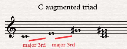 Augmented chords got a strange sound, usually used in sci-fi background music or any genre that requires to create an interesting and strange sound but less of the evilness of diminished chords. Augmented triad is a major triad with an augmented 5th. Augment is the same as sharpening a note or moving one fret higher.